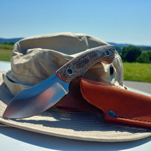 Nóż został wykonany bardzo schludnie i nie mam się do czego przyczepić. Wyjście szlifu równe, tak samo jak szlify. Jedynie co mi się do końca nie spodobało, to jakość i wygląd okładzin. Producent mógł skusić się na użycie ładniejszego materiału. Oczywiście, niektórym może się podobać, mi jednak czegoś brakuje. Czerwone przekładki są fajnym dodatkiem, tylko sama mikarta… Z czasem zauważyłem, że rękojeść zrobiła się włochata, wystają z niej nitki. Pierwszy raz mam z takim czymś do czynienia. Ciekawe czy trzeba to golić, hym… Do noża dodana jest prosta pochewka z grubej skóry, szytej maszynowo. Spełnia ona swoje zadanie, chociaż jakby szwy były ładniejsze, całość zyskałaby efekt wow. Wielu producentów niestety aspekt ten pomija, wiadomo- koszty produkcji. Tylko ja wolałbym zapłacić trochę więcej i kupić coś naprawdę w 100% dopracowanego.