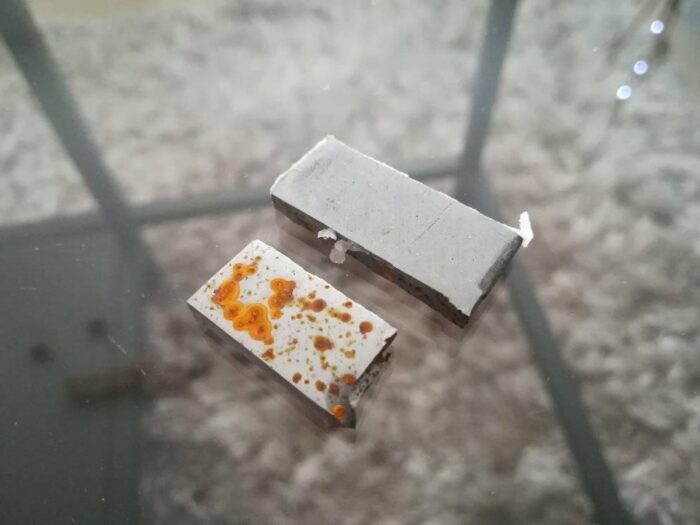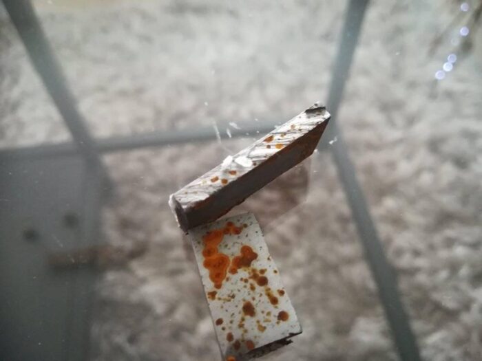 Czas przyszedł na testy, pogoda za oknem deszowa więc super. W piwnicy gdzie majsterkuję ( Przynajmniej tak myśli żona, ja tam sobie odpoczywam 🙂 ) znalazłem dwa odpady stali ncv1. Jeden z nich pokryłem środkiem i zostawiłem tak na balkonie.