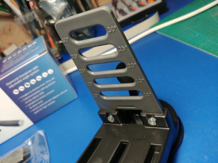 Po złożeniu wszystkiego w całość, co nie było trudne, zaskoczyła mnie jakość wykonania. Niby wszystko solidne i trzyma się kupy, ale przeraziła mnie ruchomość podziałki, na której mamy kąty. To miejsce moim zdaniem powinno mieć możliwość sztywnego zamocowania. Kilka razy podczas ostrzenia zdarzyło mi się, że element po prostu wypadł. Na plus na pewno można zaliczyć solidną gumową przyssawkę, która zdała egzamin na laminowanym blacie biurka. Elementy mocujące nóż, jak również ten, który mocuje nożyczki, zostały wykonane z kawałka blaszki o grubości 1 mm. Więcej zobaczcie sobie sami na zdjęciach.