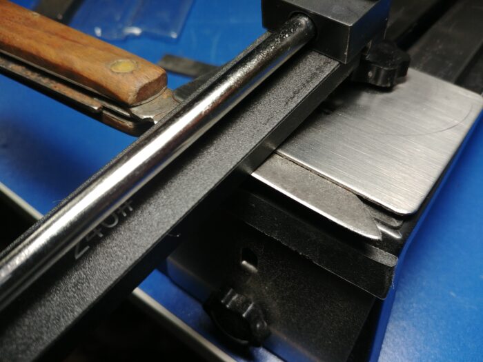 Do tej pory większość noży ogarniałem z ręki lub na ostrzałce typu V… Przyda mi się coś, co mogłoby w bardo dokładny sposób wyprowadzić nową KT.