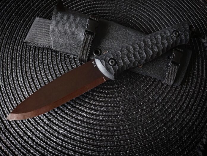 Już pewnie zwróciliście uwagę na grubości noża podaną w specyfikacji. Minimalne różnice niestety mogą powstać na skutek usuwania odwęglonej warstwy stali, która powstał w hucie. Pan Kamil podczas swojego procesu hartowania zabezpiecza już stal przed tym niepożądanym procesem. Dzięki tym wszystkim procesom zyskujemy nóż, który w każdej części ma taką samą twardość. Na rękojeści mamy dobrze znane G10, które jest naprawdę cenionym materiałem. Toxic, z którym mamy tutaj styczność, jest mim zdaniem dobrze zrobiony i nie powoduje negatywnych odczuć, nawet przy długiej pracy nożem.