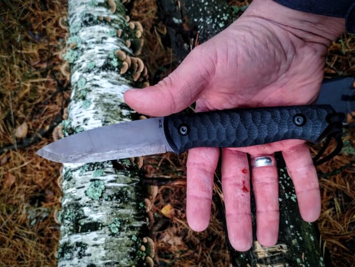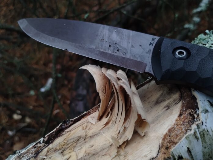 Codzienne zadania nóż wykonuje dobrze, nie jest to jednak pełny płaski szlif. Wybierając ten projekt użytkownik musi być świadomy wyboru. Dzięki niskiemu szlifu scandi mamy mocny czubek i połupaną cebulę. Takie jest życie i dlatego jeżeli nie lubisz kompromisów, musisz mieć pojemny plecak.